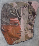 Luna Meis heeft een aantal van deze figuren, zoals Echnaton, Chephren en koning Mykerinos op groot formaat doek geschilderd met acrylverf en zand.